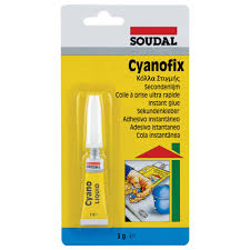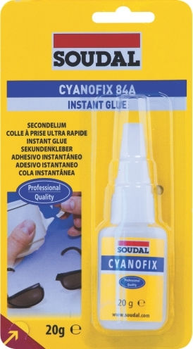 Κυανοακρυλική κόλλα στιγμής από την Soudal. Κολλάει γρήγορα μη πορώδεις επιφάνειες όπως πορσελάνη, κεραμικά, γυαλί, πλαστικό, δέρμα, λάστιχα, μέταλλα. Mε υψηλή δύναμη στη συγκόλληση. Χωρίς διαλύτες.