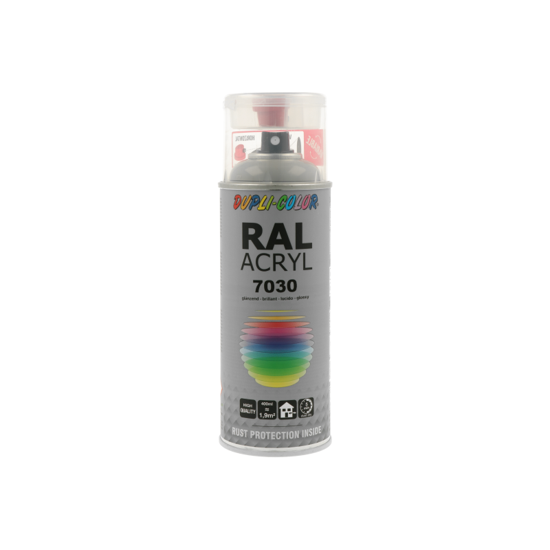 Ακρυλικό σπρέι βαφής γκρι/RAL 7030 Dupli Color, υψηλής ποιότητας. Ιδανικό για βάψιμο και προστασία μεταλλικών επιφανειών όπως μηχανών και μεταλλικών τμημάτων οχημάτων. Κατάλληλο για βάψιμο ξύλινων, μπαμπού ή μεταλλικών επίπλων μέσα στο σπίτι ή στον κήπο. Χαρακτηριστικά: εξαιρετική πρόσφυση σε πλήθος υλικών, αντοχές σε καιρικές συνθήκες και ακτίνες UV, ματ φινίρισμα.