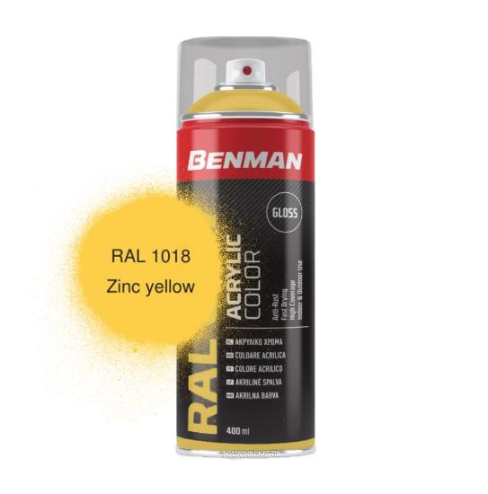 Benman Zinc Yellow Ακρυλικό Σπρέι – Κίτρινο Ψευδάργυρου gloss / RAL 1018 400ml