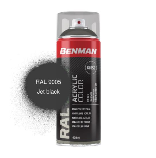 Benman Jet Black Ακρυλικό Σπρέι – Μαύρο gloss / RAL 9005 400ml