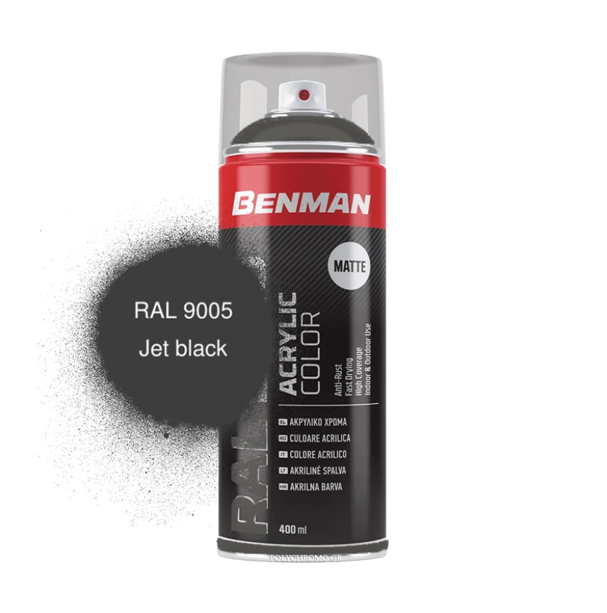 Benman Jet Black Ακρυλικό Σπρέι – Μαύρο mat / RAL 9005 400ml