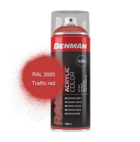 Benman Traffic Red Ακρυλικό Σπρέι – Κόκκινο gloss / RAL 3020 400ml