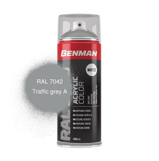 Benman Traffic Grey Ακρυλικό Σπρέι – Γκρι gloss / RAL 7042 400ml