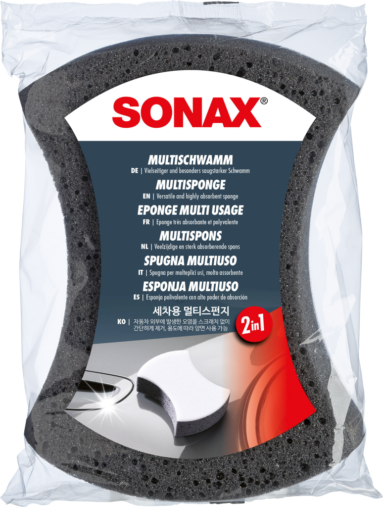 Σφουγγάρι γενικής χρήσης για το αυτοκίνητο. Ιδιαίτερα απορροφητικό. Διαθέτει δύο διαφορετικές πλευρές. Η μαλακή υφή της γκρι πλευράς είναι κατάλληλη για όλο το αυτοκίνητο. Η σκληρή επιφάνεια της λευκής πλευράς είναι ιδανική για την αφαίρεση επίμονης βρωμιάς (π.χ. υπολείμματα εντόμων).