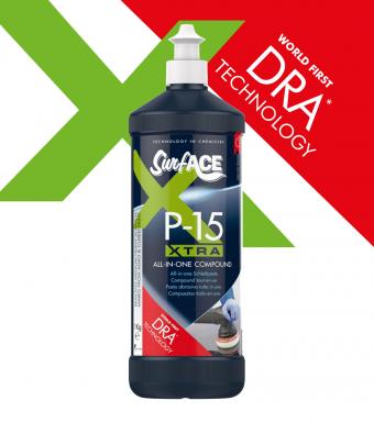 Η P-15 Xtra με τη μοναδική τεχνολογία DRA™ (Dynamic Response Abrasion) που ενσωματώνει οξείδια μικροακρίβειας, αφαιρεί εύκολα ατέλειες, γρατσουνιές, στροβιλισμούς και οξείδωση από όλα τα φινιρίσματα, συμπεριλαμβανομένων ανθεκτικών στις γρατσουνιές, σκληρυμένων με υπεριώδη ακτινοβολία και παλαιωμένων χρωμάτων στον συντομότερο δυνατό χρόνο. Η P-15 XTRA επωφελείται από ένα σύστημα λίπανσης που μπορεί να χρησιμοποιηθεί για παρατεταμένες χρονικές περιόδους χωρίς να στεγνώσει.